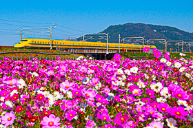 - コスモスとDY、そしてミャクミャク電車